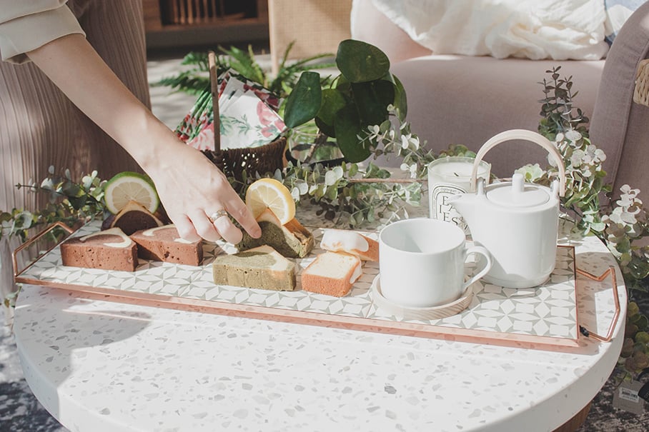 就算是小巧的客廳空間,也可以放大你的美味視覺!別讓家總是亂亂的,透過好的收納和收拾技巧空間先騰出來,像是托盤、收納盒,不只可以讓東西更有秩序,也很好隨時搬移,你也就可以更盡情的進行午茶餐桌佈置。