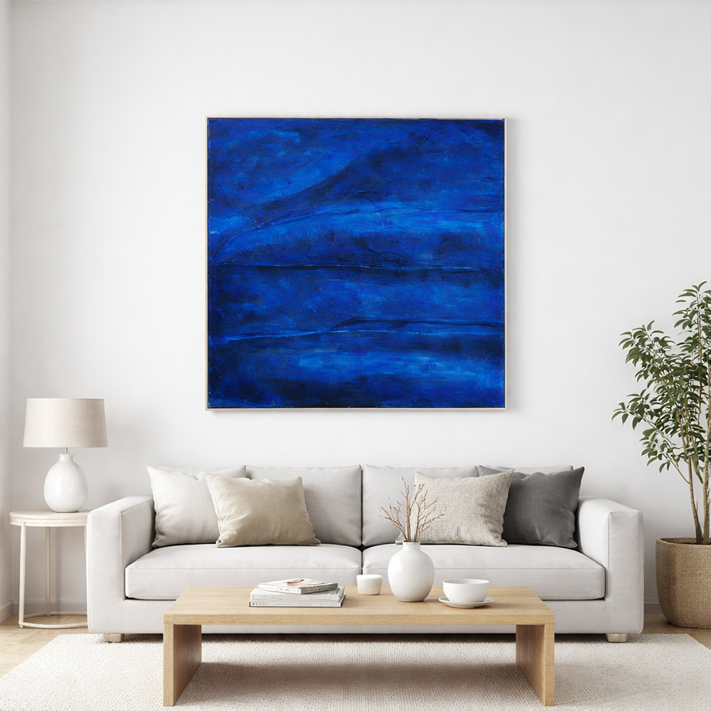 如果寧靜有顏色,那就是藍色!這幅抽像畫作以大片的寶藍,揮灑出深海中的絕妙壯闊,也是鬱鬱深洋裡,才能享受到的悠遠寧靜,在層疊的藍色裡,透過不造作的筆觸,獲得深洋裡的一些光明,讓畫面更有生命力。深洋水墨藝術掛畫適合各式的空間風格搭配,利用畫作妝點牆面,是一種大方且富有藝術質感的方式,藍色調的畫框能為氣氛注入平靜,在書房或辦公空間更需要這樣的沉著氣息。