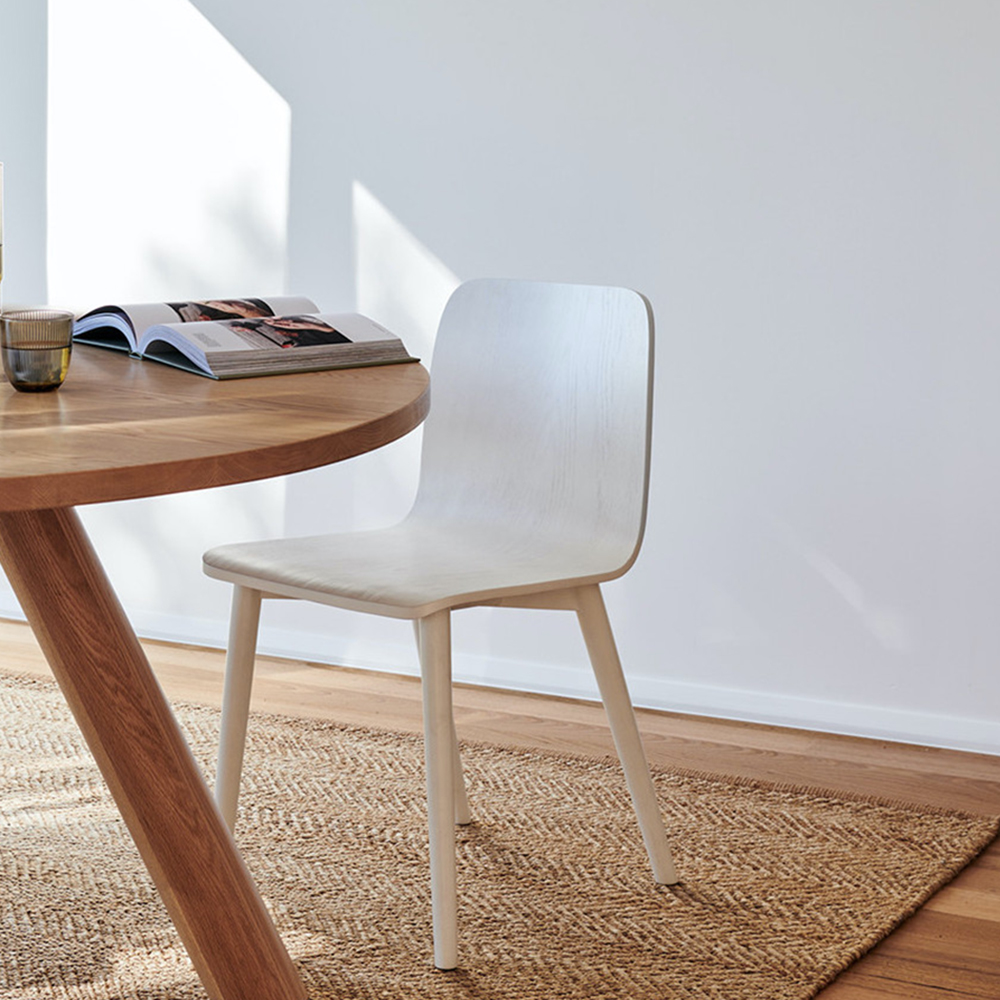將椅面與椅背採用一體成型的設計,每一處的弧度和曲面都以適合人體姿態為主的角度去揉合與呈現,簡歛的設計結構加上溫潤的弧線,展現北歐設計的特質與精隨,在以木色或白色為主調的北歐空間中可以點綴一點自己平時喜愛的顏色,更能增添居家的溫暖光芒。