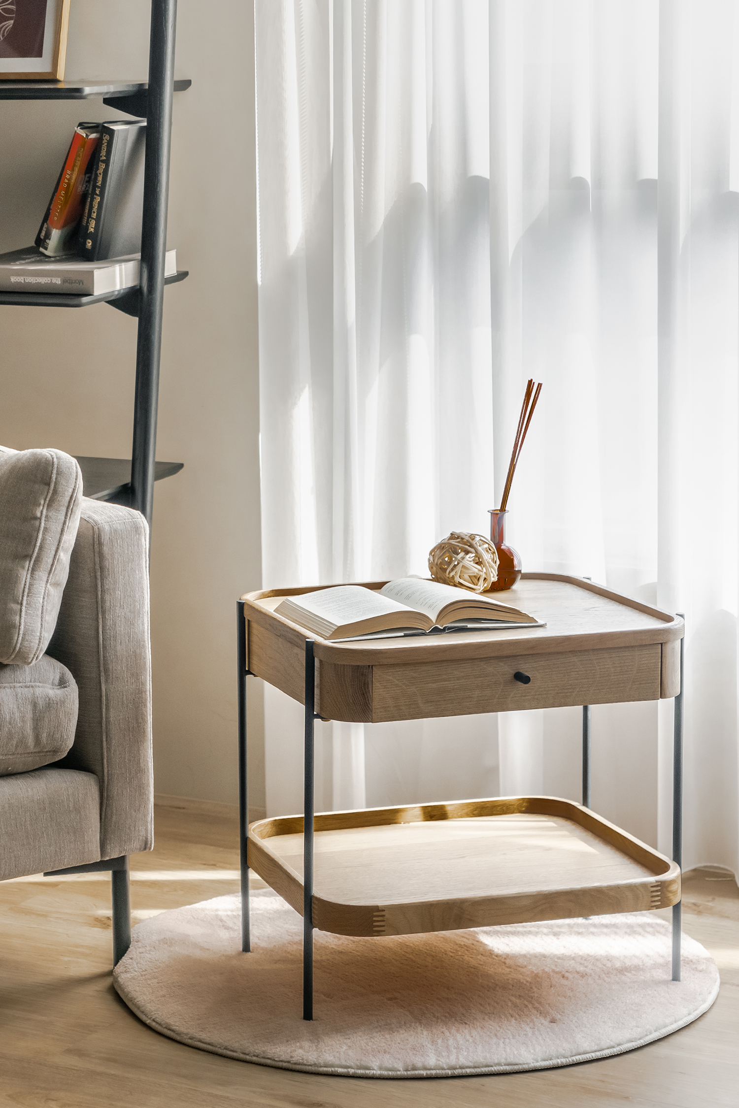 立體邊緣雙層方形邊桌展現了Tolv / Sketch藝術風格精簡化的特性,方形的桌面讓擺放更加得心應手,也可以隨意的與家中的其他邊櫃或書桌搭配,細緻桌腳與桌面一體延伸,桌沿有著防止物品掉落的設計,俐落工藝美學多了一份巧思添加無限趣味,隨心所欲地擺上時下流行的乾燥花束,或是在上頭細細栽培出美麗新鮮的多肉植物,可以使平凡的每一天都擁有不簡單的新風貌。