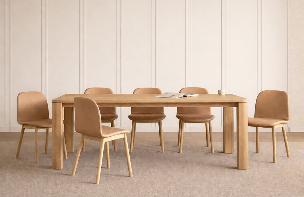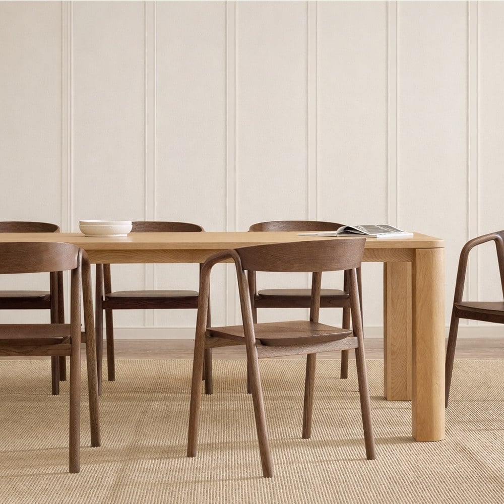 丹麥 Tolv Oli歐里餐桌,是一張穩固而從容的木桌。嚴選純淨橡木打造,厚實的桌腳帶來踏實的安心感,圓潤的轉角細節,讓堅實之中多了一份溫柔。簡潔的線條,低調卻優雅,展現純粹的設計語言。它不張揚,不喧嘩,卻能自在融入任何空間,以自然的姿態,陪伴生活的每一刻。