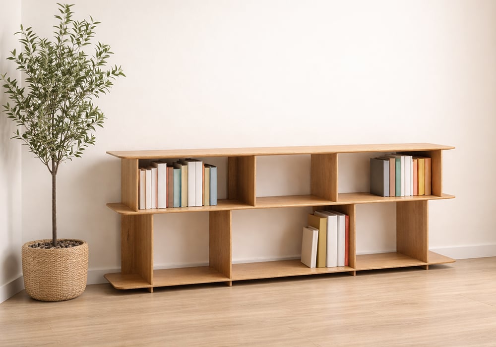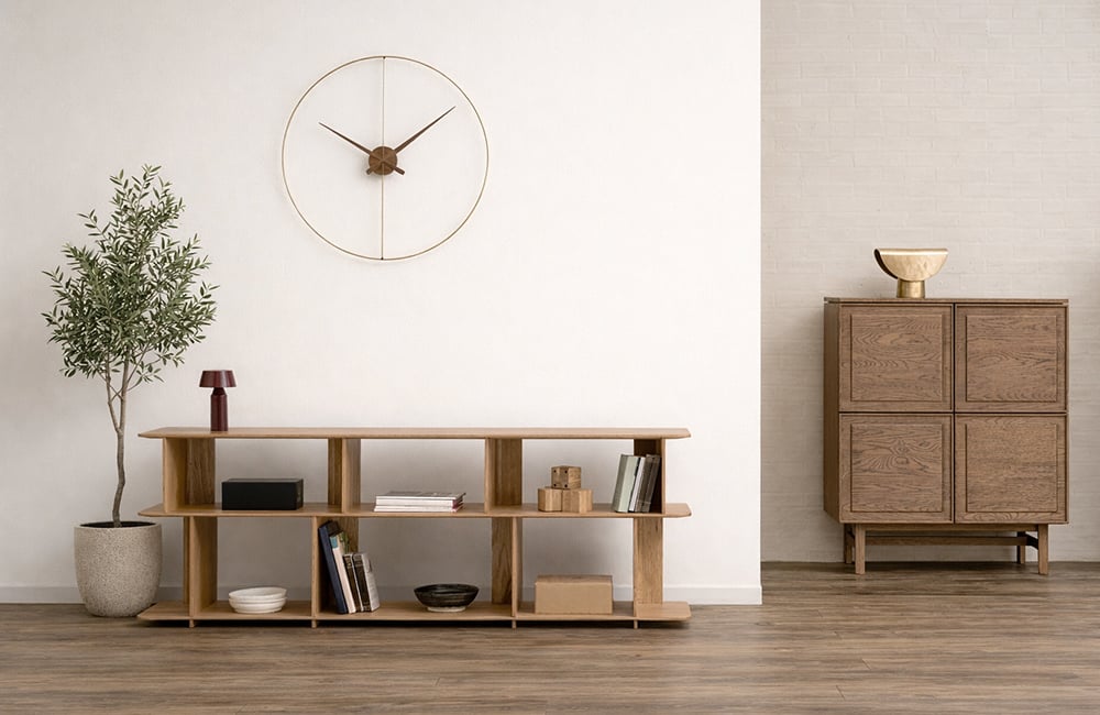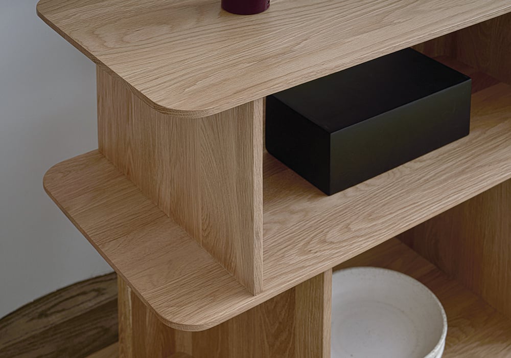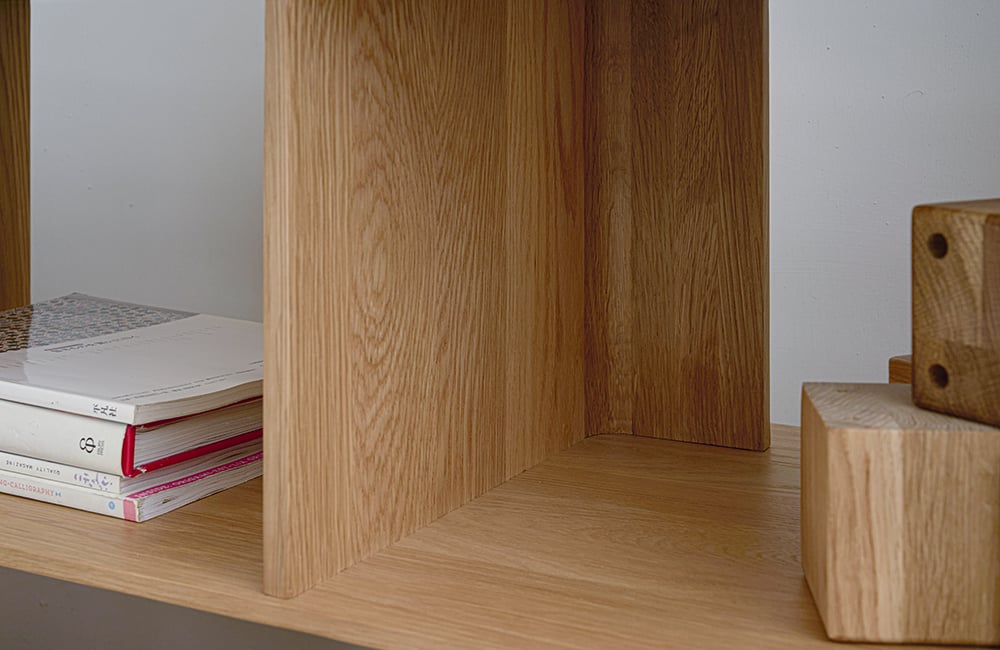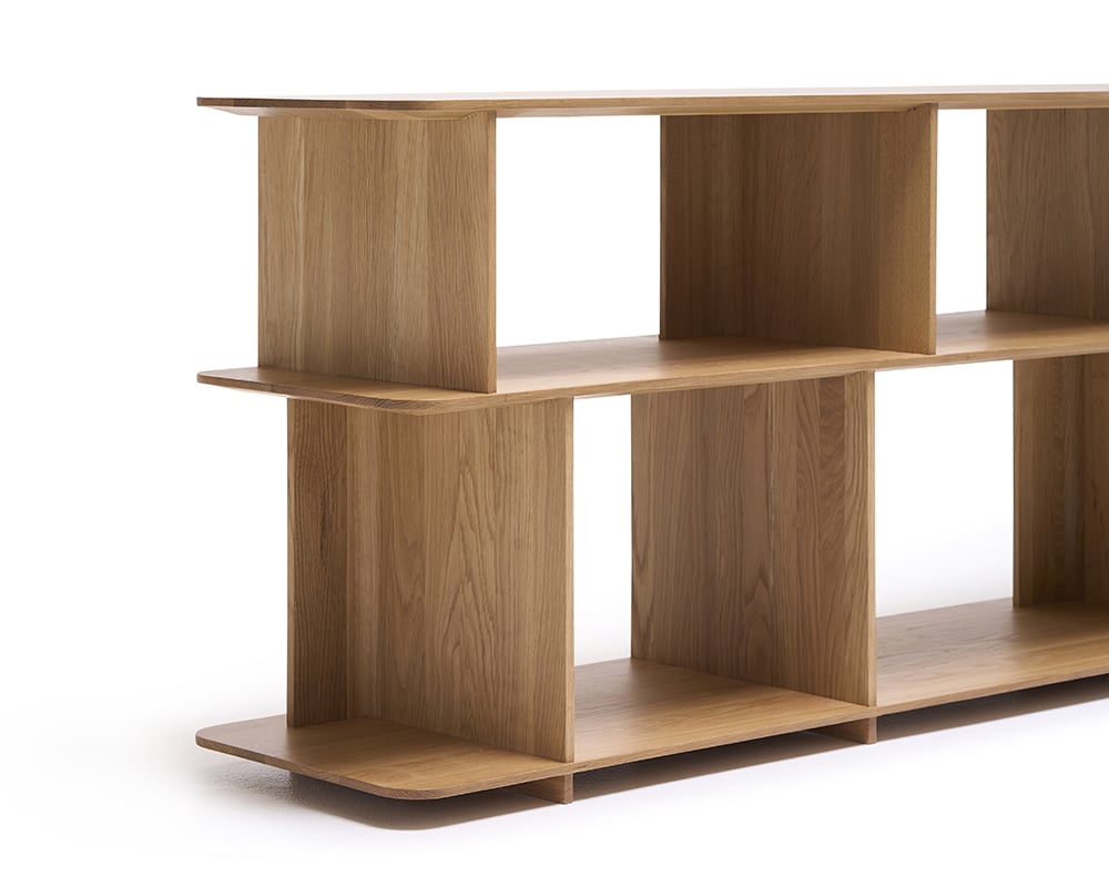 自然的木紋與細緻的工藝相互呼應,讓整體在理性結構中保留一份溫度。Jaunt 瓊特層架不只是層架,更是一件能為空間帶來節奏與呼吸的家具。