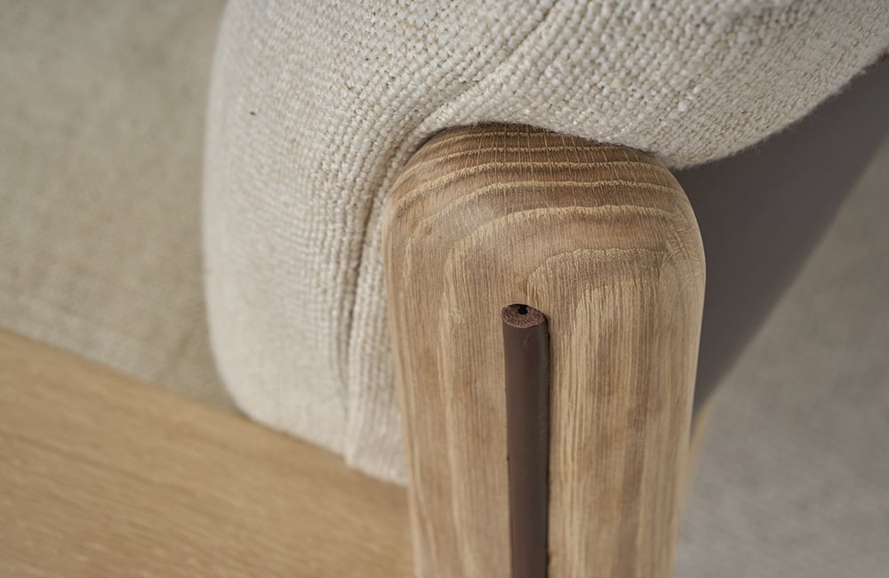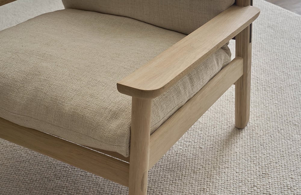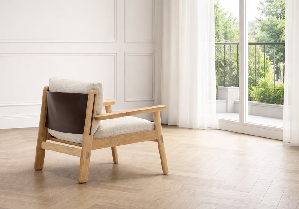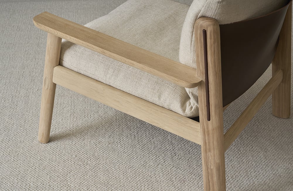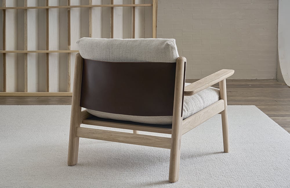 丹麥 Tolv Wren 潤木扶手休閒椅,是一張你實際坐上去,才會真正感受到差異的作品,它沒有刻意誇張的造型,而是把重點放在每一個細節,全實心橡木手工打磨,讓線條自然圓潤,摸起來像被時間磨過的鵝卵石,溫順而紮實。仔細看,會發現木構之間保留了傳統榫接工法,這不只是結構,更是一種對工藝的堅持,椅背則用丹麥頂級品牌 Sorensen 的高品質皮革,以吊帶方式支撐,坐感柔韌而有彈性,隨著時間使用,皮革會慢慢產生屬於你的痕跡,越用越有味道,它不靠誇張設計吸引目光,而是用材質與工藝,讓人願意坐下來,慢慢感受。