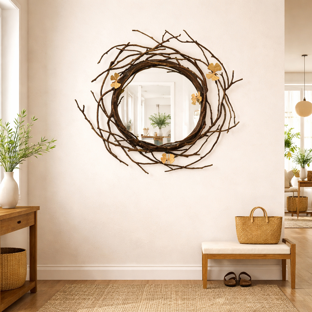 銀杏葉有著如蝴蝶翅膀般的模樣,隨風而下便有如蝴蝶飛來的姿態,像是樹木幻化成生物,擁有閃動的雙眼在眨著,對此深深著迷的 Michael Aram 便製作了此系列,精細的描繪銀杏葉的脈絡,更呈現了好似蝴蝶飛舞般靈動的神韻與氛圍,此款銀杏蝴蝶翅膀裝飾圓鏡,精美而夢幻的造型讓人如同生在童話故事中一般,讓鏡子也可以是藝術擺飾,也可以增加空間中的穿透性與靈活度。