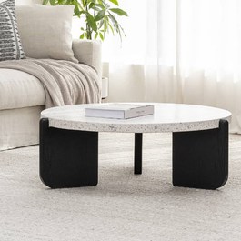 丹麥Tolv 水磨石面圓形茶几 (黑腳/白面、直徑70公分)