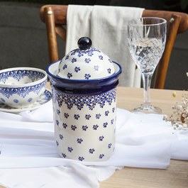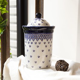 波蘭 Zaklady 藍花星點陶瓷圓型儲物罐 (直徑16.5公分)