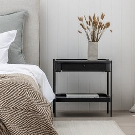 丹麥Tolv Humla 立體邊緣雙層方形收納邊桌 (黑)